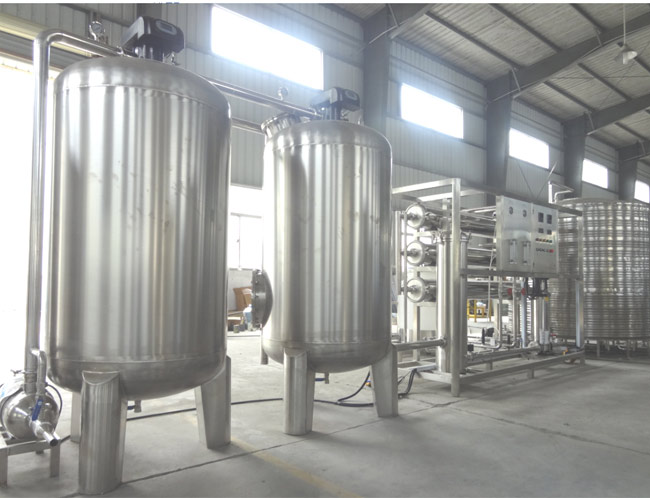 Raw water → raw water tank → booster pump → quartz sand filter → activated carbon filter → water softener (see water quality options) → PP security filter → high pressure pump → RO reverse osmosis system → ultraviolet sterilizer → finished water → finished water tank ←Ozone Mixer←Ozone Machine